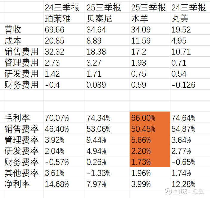 先看财务数据,因为珀莱雅和丸美还没有发三季度报,为了维度一致取24年三季报