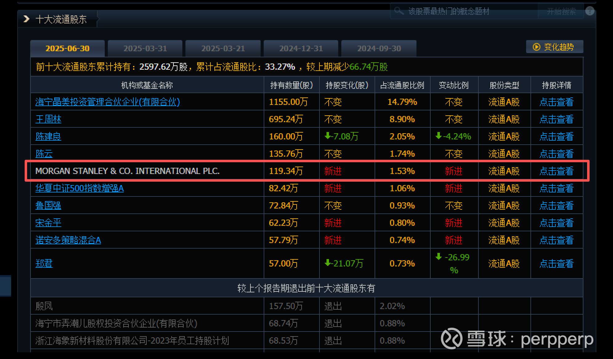 6、股东结构,MORGAN STANLEY&CO.INTERNATIONAL PLC.这逼外资跑进来,想干嘛?难度也看好未来发展啊。