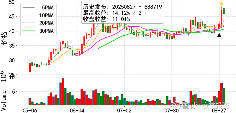 说明: 黑三角代表发布日,拒绝马后炮,相关发帖可按日期回溯,如果没有则为彩蛋内容; 选股模型纯自研不外传,选股结果每日无偿发布,抛砖引玉,仅供备选池参考.