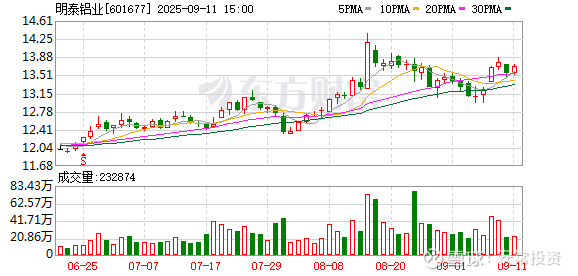 $明泰铝业(SH601677)$量价时空: 股价突破207天新高后,回调19天,累计换手率55%;缩量2天。资质证明: 营收同比11.0% 利润同比-12.11% EPS 0.76 PE 9.06 ROE 2.48%股东回报: 股息率 1.25%<2% 一年定存; 募资69.52亿 分红13.64亿涨停基因: 近一年股性不活跃, 一次涨停都没有
