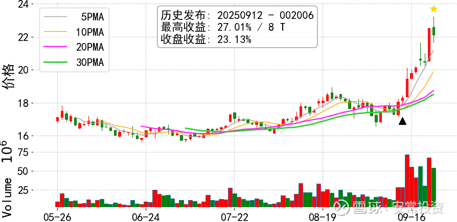 说明: 黑三角代表发布日,拒绝马后炮,相关发帖可按日期回溯,如果没有则为彩蛋内容; 选股模型纯自研不外传,选股结果每日无偿发布,抛砖引玉,仅供备选池参考.