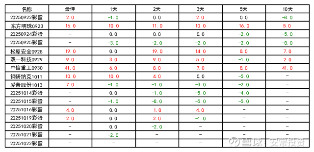说明: 黑三角代表发布日,拒绝马后炮,相关发帖可按日期回溯,如果没有则为彩蛋内容; 选股模型纯自研不外传,选股结果每日无偿发布,抛砖引玉,仅供备选池参考.