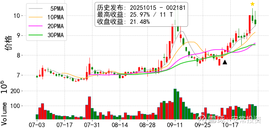[彩蛋是从大牛股提取走势特征, 选出具有相似形态的个股. 后续需要量能配合]基本面: 沪主板技术面: 资金面: 年涨停10次消息面: 避雷针: