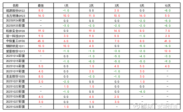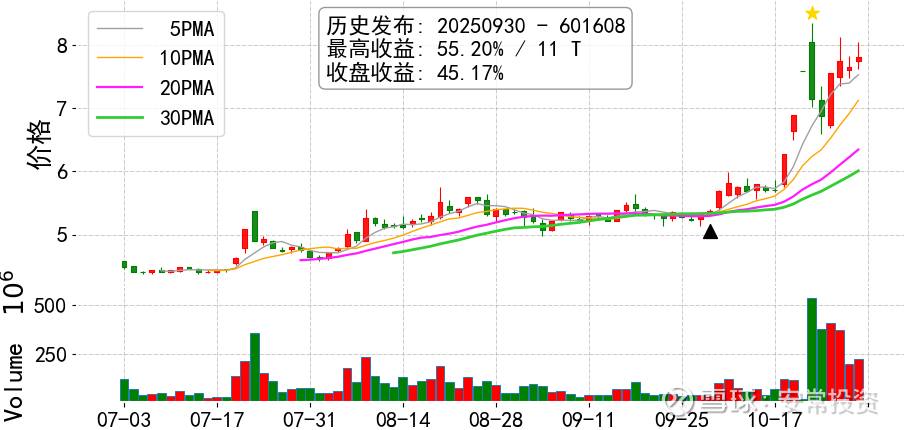 说明: 黑三角代表发布日,拒绝马后炮,相关发帖可按日期回溯,如果没有则为彩蛋内容; 选股模型纯自研不外传,选股结果每日无偿发布,抛砖引玉,仅供备选池参考.