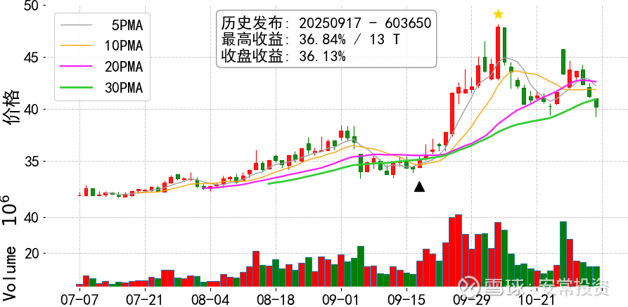说明: 黑三角代表发布日,拒绝马后炮,相关发帖可按日期回溯,如果没有则为彩蛋内容; 选股模型纯自研不外传,选股结果每日无偿发布,抛砖引玉,仅供备选池参考.