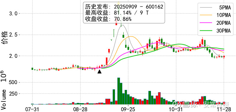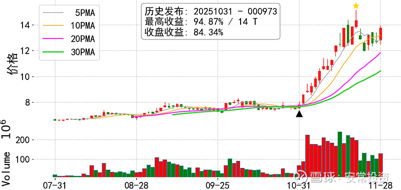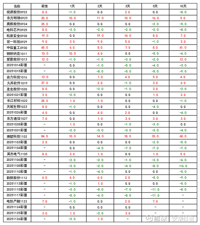 说明: 黑三角代表发布日,拒绝马后炮,相关发帖可按日期回溯,如果没有则为彩蛋内容; 选股模型纯自研不外传,选股结果每日无偿发布,抛砖引玉,仅供备选池参考.
