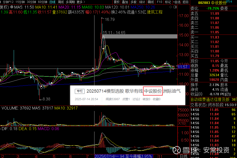 $中设股份(SZ002883)$ 上次是2025年7月14号
