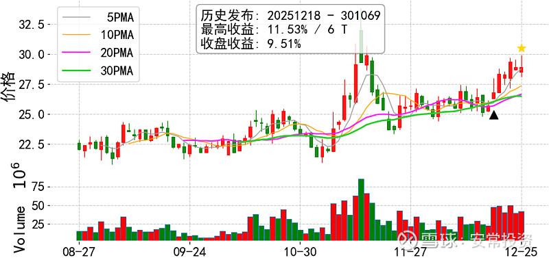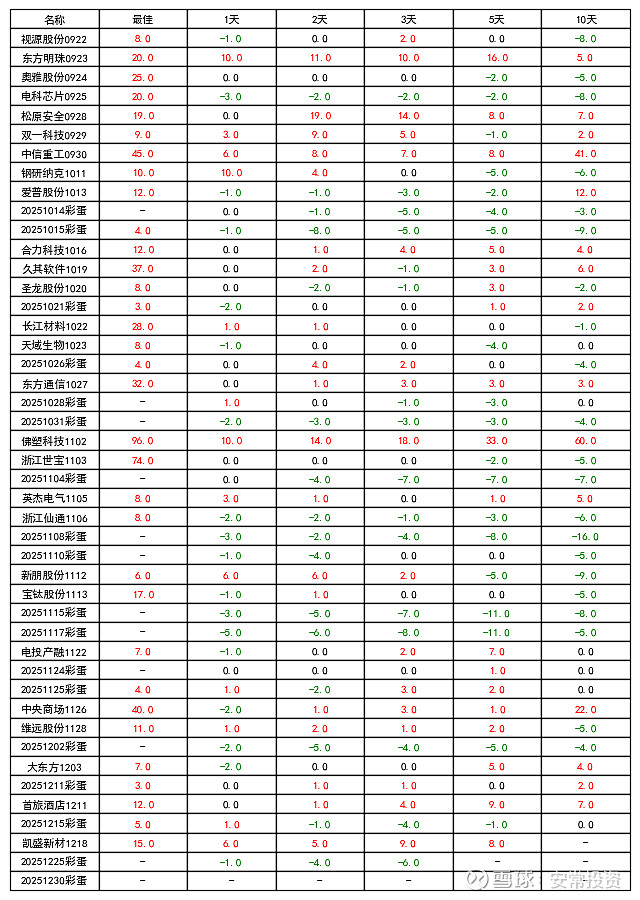说明: 黑三角代表发布日,拒绝马后炮,相关发帖可按日期回溯,如果没有则为彩蛋内容; 选股模型纯自研不外传,选股结果每日无偿发布,抛砖引玉,仅供备选池参考.