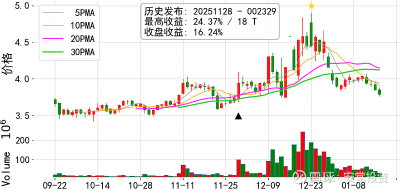 说明: 黑三角代表发布日,拒绝马后炮,相关发帖可按日期回溯,如果没有则为彩蛋内容; 选股模型纯自研不外传,选股结果每日无偿发布,抛砖引玉,仅供备选池参考.