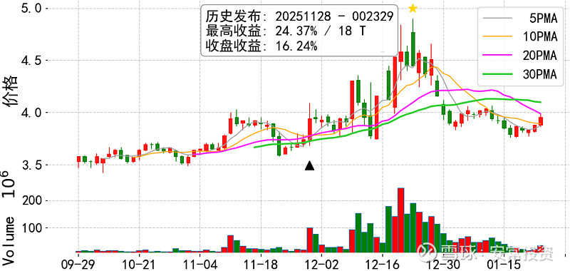 说明: 黑三角代表发布日,拒绝马后炮,相关发帖可按日期回溯,如果没有则为彩蛋内容; 选股模型纯自研不外传,选股结果每日无偿发布,抛砖引玉,仅供备选池参考.