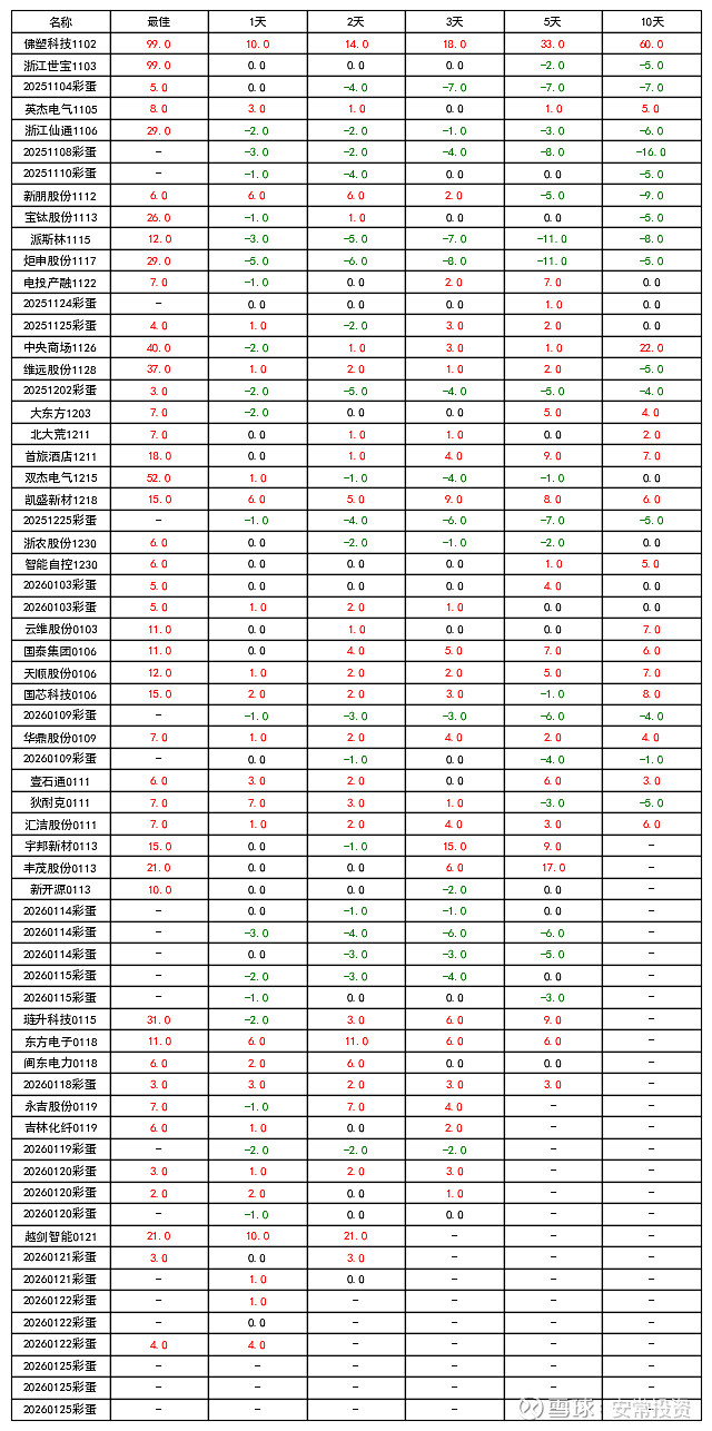 近期发布64只彩蛋, 涨幅超过2%的有45只, 胜率70.3%.