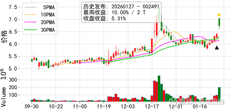 量价时空: 股价突破69天新高后,回调0天,累计换手率4893%;股价再次突破566天新高;均线多头排列;量能放大6天。