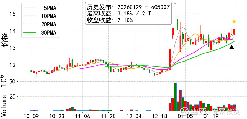量价时空: 股价突破92天新高后,回调13天,累计换手率14%;均线多头排列;量能放大2天。
