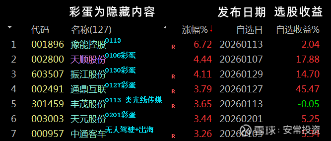 彩蛋1:量价时空: 股价突破100天新高后,回调8天,累计换手率18%;股价再次突破108天新高;量能放大1天。