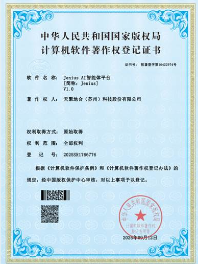 此外,Jenius AI智能体平台也已正式获得计算机软件著作权登记证书,进一步完善了公司在智能系统研发领域的知识产权布局。