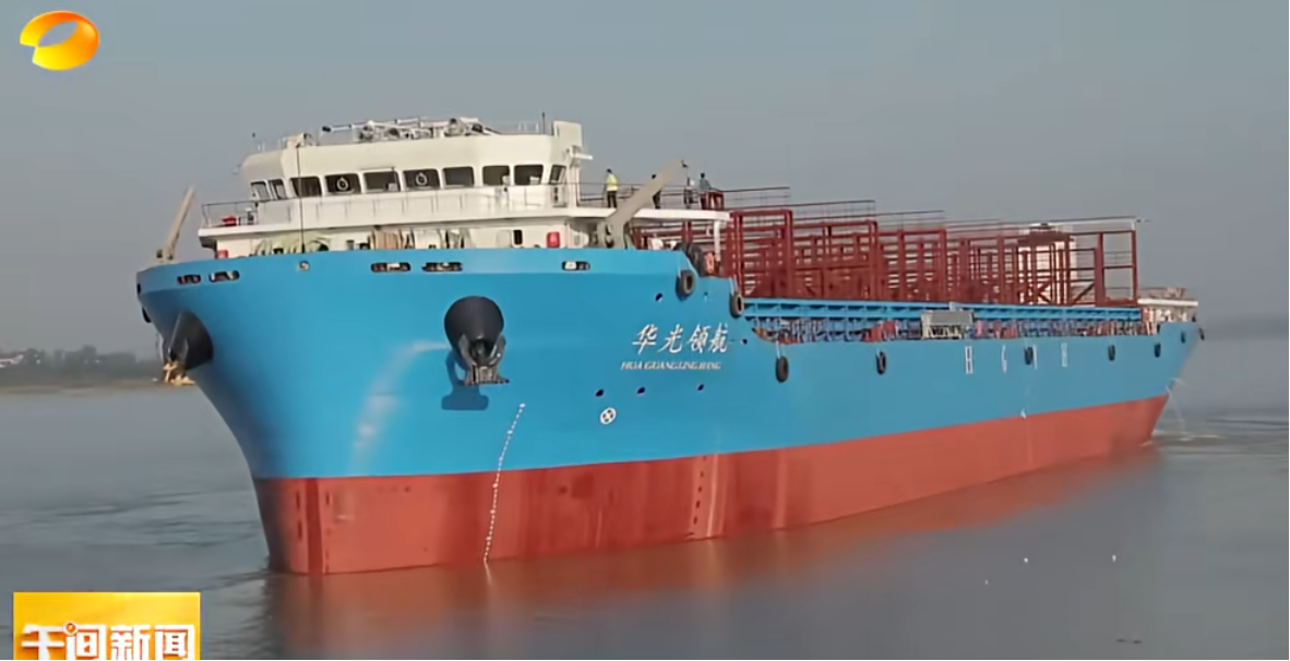 资料显示,“华光领航”号集装箱船由北交所上市企业华光源海(920351)斥资5000万新建。据报道,适航结束后,该船将直抵岳阳港,用于岳阳港到上海洋山港的航运。
