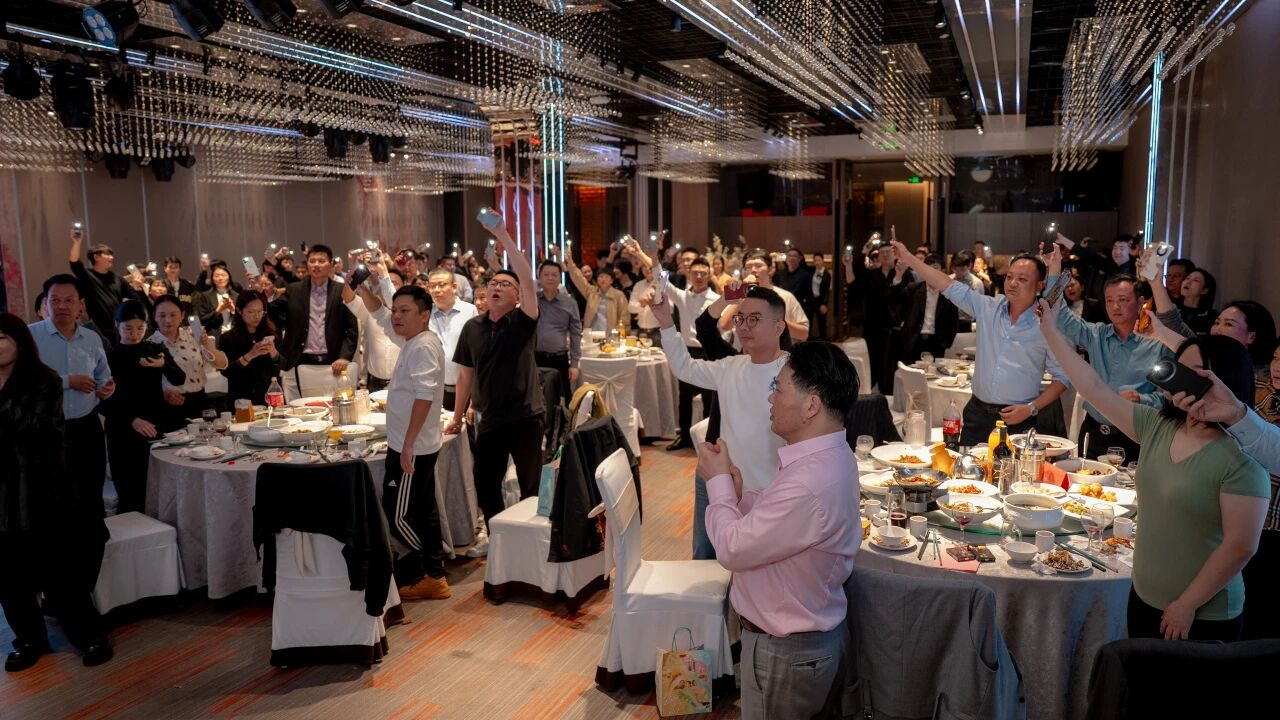 晚宴现场,特邀嘉宾陈泓印博士携乐队带来震撼人心的声乐表演,激昂旋律瞬间点燃全场;苏州子公司总经理顾玉栋深情独唱经典曲目《You Raise Me Up》,用醇厚嗓音唱出对团队的敬意与期许;湖北子公司员工带来合唱《你还要我怎样》,悠扬旋律中尽显华光源海人多才多艺的风采。互动游戏“击鼓传花—桃花朵朵开”环节笑声不断,将现场气氛推向轻松愉悦的高潮。长沙子公司员工接力献唱《夏天的风》《老男孩》,青春洋溢;苏州子公司员工以一首活泼欢快的《萝卜和白菜》展现满满活力。最后,全体成员手持星灯,齐声合唱《感恩的心》,温暖歌声中流露出对彼此的感谢与对未来的坚定信念,为晚宴画上圆满句号,更彰显华光源海团队强大的凝聚力与向心力。
