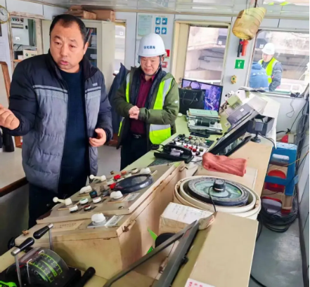 在船舶驾驶台,李卫红董事长仔细检查了导航设备与通信系统的运行状况,查阅了《航海日志》和应急预案资料,并询问驾驶员对枯水期间航线特点、水文气象条件的掌握情况。他强调:“春运春节期间水域繁忙,气象复杂,必须确保每一套设备都处于最佳状态”。