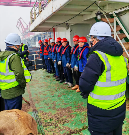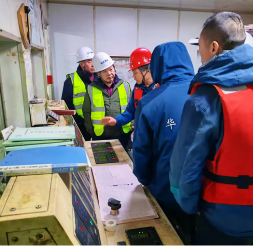 2026年1月26日上午,华光源海集团董事长、总经理李卫红率检查组登上停靠在港的“华光洋山”轮,深入船舶驾驶台、机舱等关键部位,开展春运春节前专项安全检查。公司分管安全副总、指定人员、海务主管、机务主管及相关岗位人员共同参与检查。