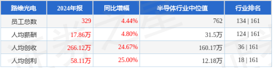 证券之星统计显示,路维光电2024年员工总数329人,同比增4.44%;人均薪酬17.86万元,同比增4.80%。