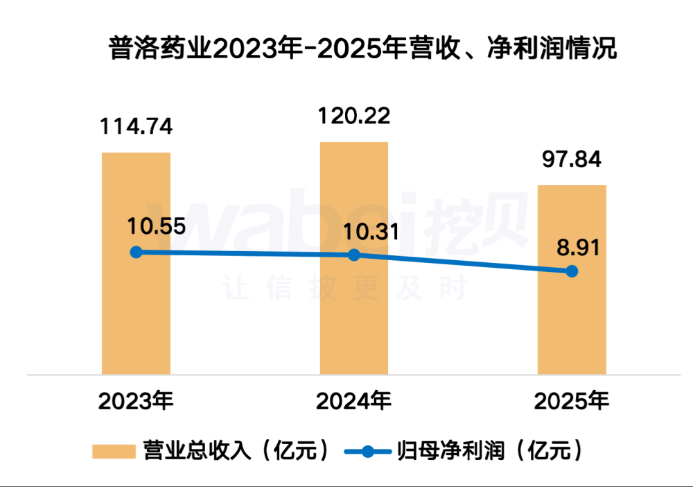 挖贝网 3月20日消息,普洛药业(000739)披露2025年年报,去年实现营业收入97.84亿元,同比下滑18.62%;实现归母净利润8.91亿元,同比下滑13.62%。