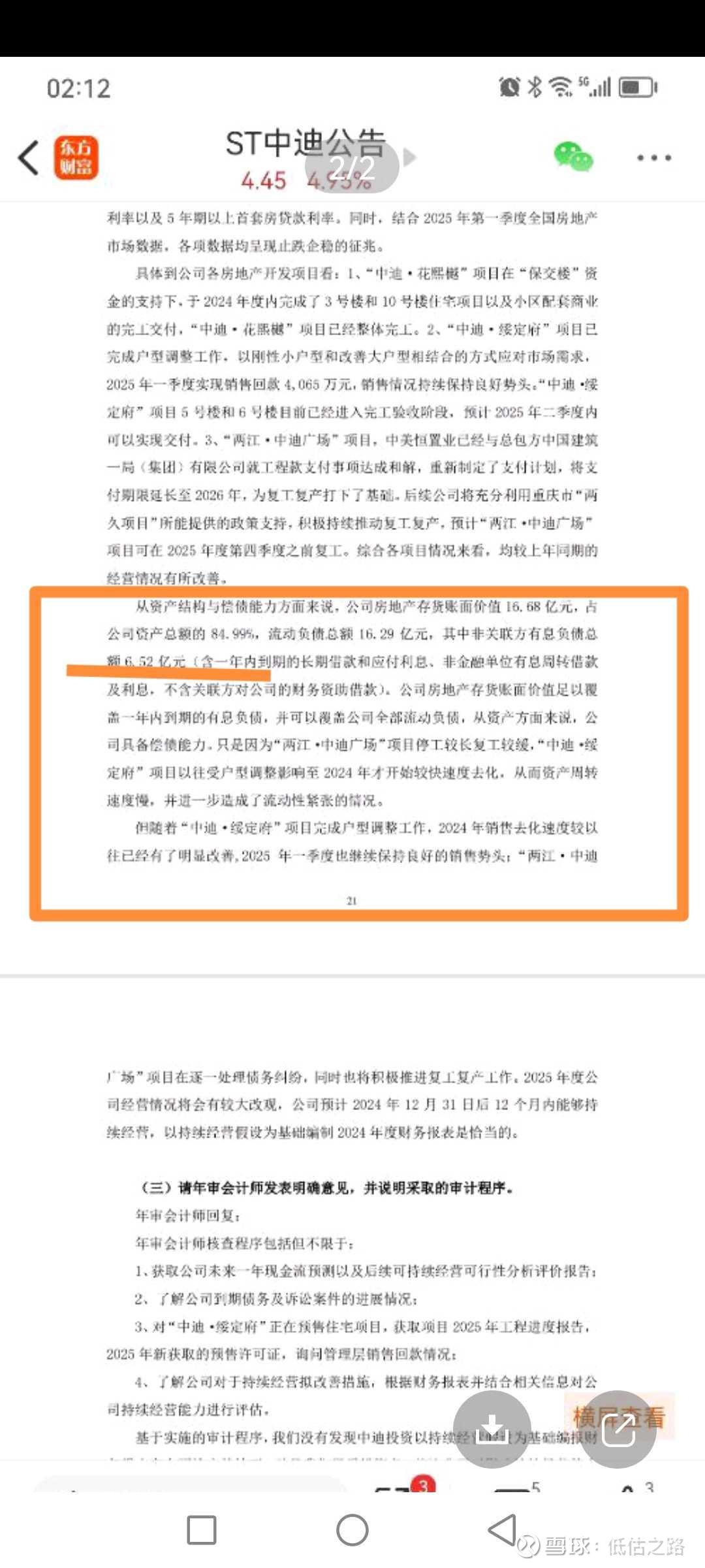 1、迪王是一支未来2-5年可能还有10倍到50倍空间的票,是可以让大部分改善自己生活的黄金机会,出去的后面回来的概念80%以上,前面几块时天天晒举报的又出来了,另这几天原来疯狂的多方变成空方,你们让他们周一把跌停位的成交单发出来看一下,有没有一个人挂出来,身体最诚实 3、周四周五吴老太的乌龙操作让大家知道了2025年的净资产将为正的,大家有没有想过删掉被动重大资产重组是谁发现提出来的呢?你们见过有ST公司同时进行两个重大资产重组的吗?或者主板公司同时搞两个重大资产重组的,都是有时间限制的,所以有没有可能是为门总它们提出的重大资产重组做准备呢?至少现在中迪公司当前最主要任务是发展第二主业,房地产已无造血功能,都建完了,也没其它储备土地。所以静等董事会变更公告出来和发展第二主业的动作出来,在不在车上,比短期的小波动要重要的多。 4、净资产的影响:1.子公司债务被偿还2.55亿元后,公司合并报表的总负债减少2.55亿元。根据会计恒等式(资产=负债+所有者权益),负债减少会直接增加所有者权益(即净资产)。2.计算示例(基于三季度数据):三季度末净资产 ≈ -851.68万元债务偿还增加净资产 ≈ +2.55亿元预计2025年末净资产 ≈ -851.68万元 + 2.55亿元 = 约2.46亿元(转为正值)。3.这一影响将体现在2025年年报中,因为拍卖和过户于2025年10-11月完成,符合年报确认时点。