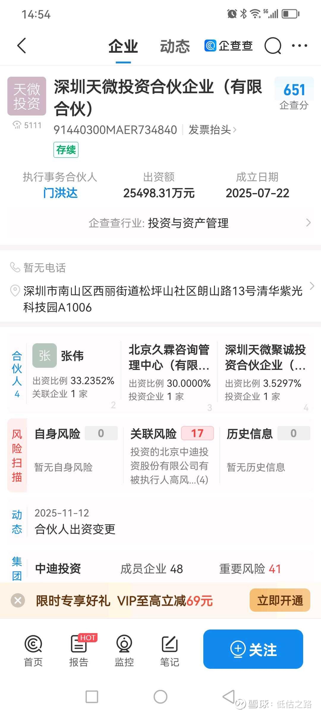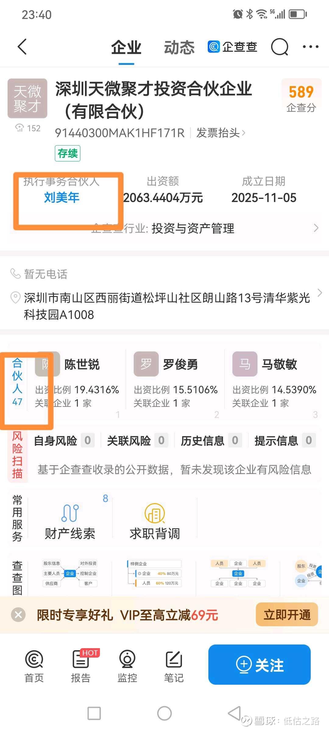 A:请看下面所有图片:现中迪的控股股东深圳天微投资合伙企业(有限合伙)的小股东深圳天微聚诚投资合伙企业(有限合伙),低估预测这就是天微核心员工的持股人,请看这两位合伙人向觅和刘美年,以向觅为执行事务合伙人的深圳市天微聚业投资合伙(有限公司)有合伙人25人里面也有梁锦昌(天微的副总裁),以刘美丽为执行事务合伙人的深圳天微聚才投资合伙企业(有限合伙),里面合伙人47人,那低估请问大家这部分股份要增值,要不要考虑团队核心成员的利益,会不把部分业务资产或全部业务资产带给中迪,黑子永远都是黑子,永远找空方借口,只是时间问题。 2、 债务重组:现在做的所有动作都是资产注入前的债务重组阶段的动作,第一房子抵债,第二康平铁科的法院拍卖可能增加中迪净资产,第三吴老太退出前实控人,这叫去中迪化,第一吴太保持5亿元关联第一大债权人地位,可能可以保一个董事席位,现在主动退出说明要退出董事会了,拍当时可以上诉拖时间处理完资产的事也没干;