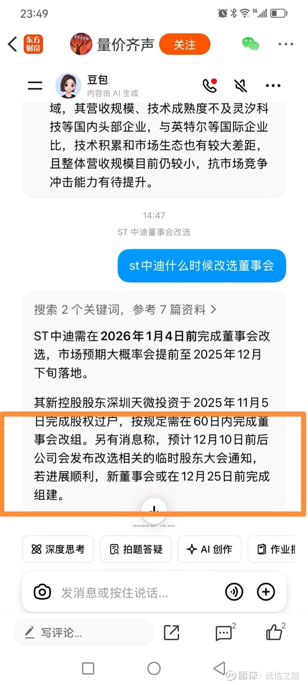 1、感觉大家信心不足是因为担心天微不入董事会,担心不给中迪带来第二主营业务,首先高科技行业最好的价值资源就是公司的人才,人家天微也是通过有限合伙把核心员人都在一条船上,采用了类华为似的跟所有核心员工利益绑定。门总他们大的方面是为了国家,行业需要有对标IBM,英特尔的AI芯片产品的突破,小的方面是为了天微的500左右的员工家庭。人家在深圳干了20多年创业的半导体行业,这次入中迪有没有带上天微的员工,低估的判断是带上了