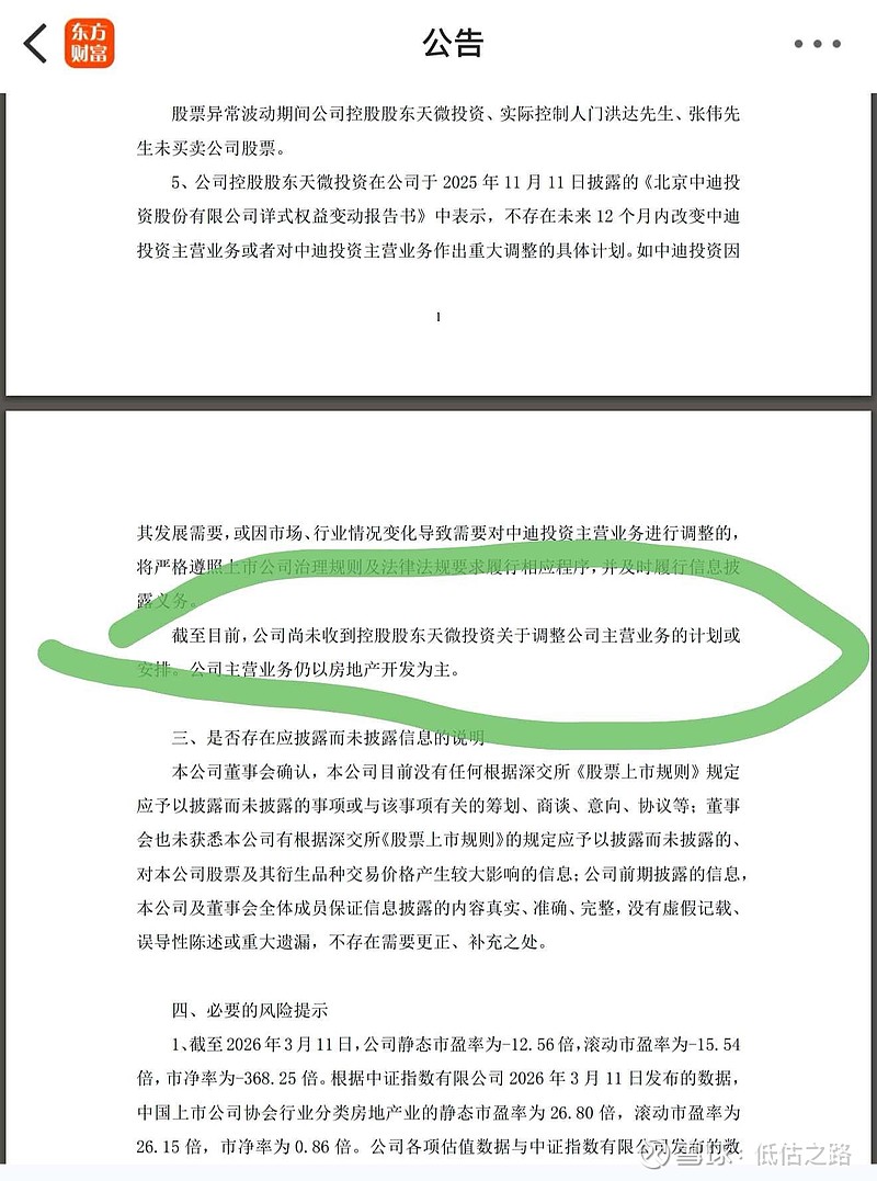 $ST中迪(SZ000609)$ 哈哈,低估亲证当年华谊嘉信,也是福石控股时的朱总是相当细心和尽责的。1、你说一异常波动公告是复制粘贴就行了,硬是相比上次的异常波动公告减少了:近期公司经营情况和内外部经营环境未发生重大变化。这一句删掉亲证公司有变化,只是公司暂未收到正式文件2、 增加了这句话:截至目前,公司尚未收到控股股东天微投资关于调整公司主营业务的计划,意思后面不好说马上进行预重组预测是正在准备中,但暂未收到正式文件$ST板块(BK0400)$ $摩尔线程-U(SH688795)$