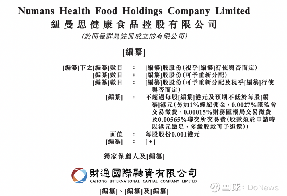 DoNews12月30日消息,12月24日,纽曼思健康食品控股有限公司(以下简称:纽曼思)通过港交所聆讯,财通国际融资有限公司为独家保荐人。