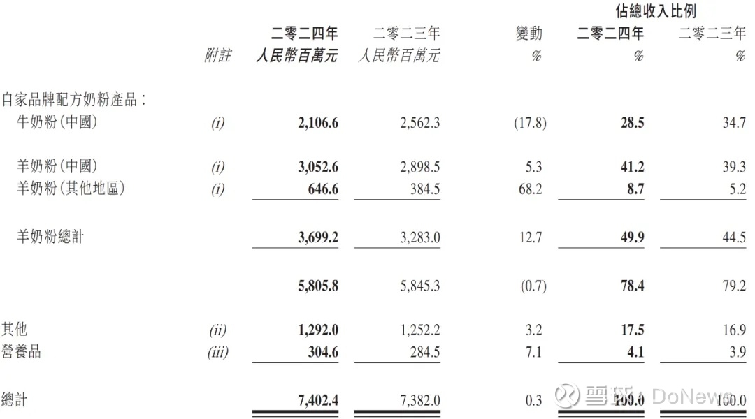 2024年,牛奶粉业务收入为21.07亿元,同比下降17.8%,占总营收的比例由2023年的34.7%下降至28.5%。