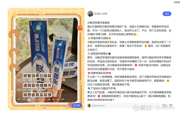 网友“春水東流”评论:“牙医都治不好的,牙膏能刷好了?”