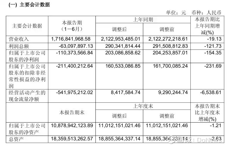 截至报告期末,公司合并总资产183.60亿元,较年初下降2.63%,归属于上市公司股东的净资产108.79亿元,较年初下降1.21%。