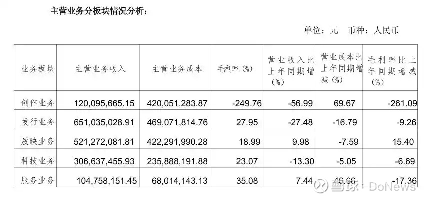 据半年报,公司主营业务包括创作、发行、放映、科技、服务、创新六大板块。