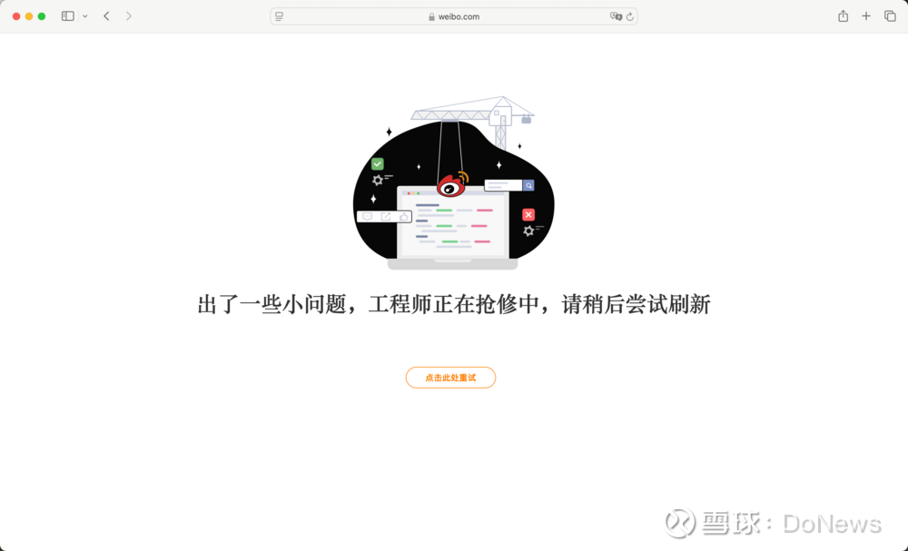 据悉,下午微博多用户界面显示,出了一些小问题,工程师正在抢修中,请稍后尝试刷新。