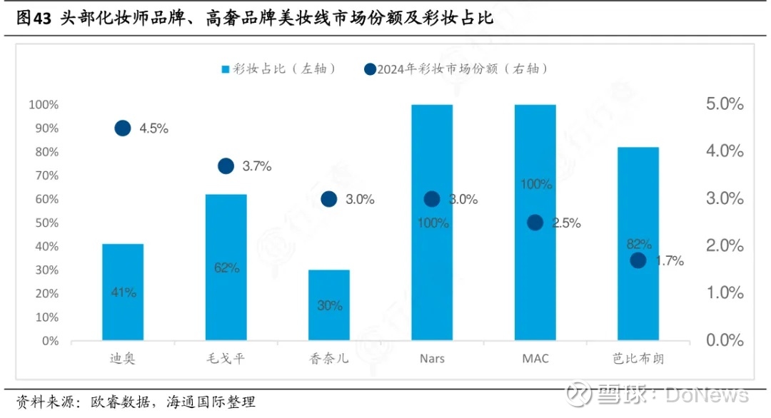 中国美妆市场长期存在“两极分化”,大众品牌靠性价比走量,高端市场被海外高奢品牌垄断(迪奥、香奈儿彩妆占比超30%)。