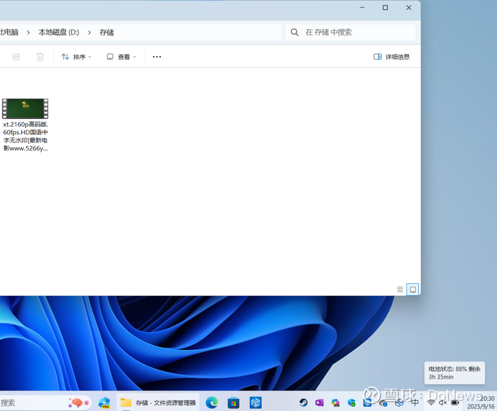 Dell Pro 13 Plus锐龙 AI版配备了55Whr的电池,支持快速充电,续航上我们使用4K 60帧的电影,模拟日常使用,在88%的电量时候我们调整到50%亮度,播放电影一个半小时,从88%掉到了71%,耗电17%,大概耗电9.35Whr,如果按照一个半小时电影计算,满电大概可以看6部电影,总共9小时,续航相当强悍。