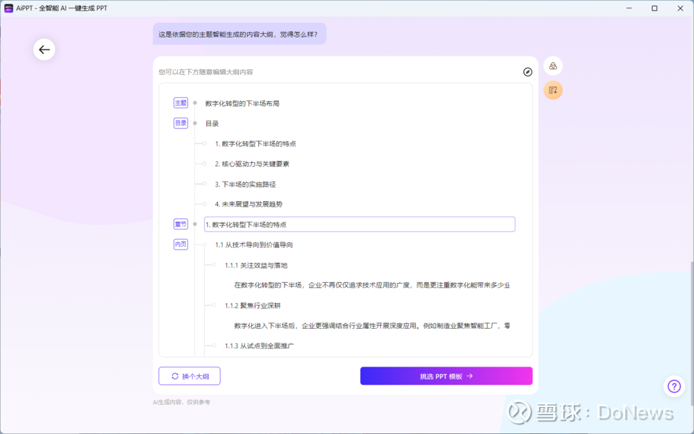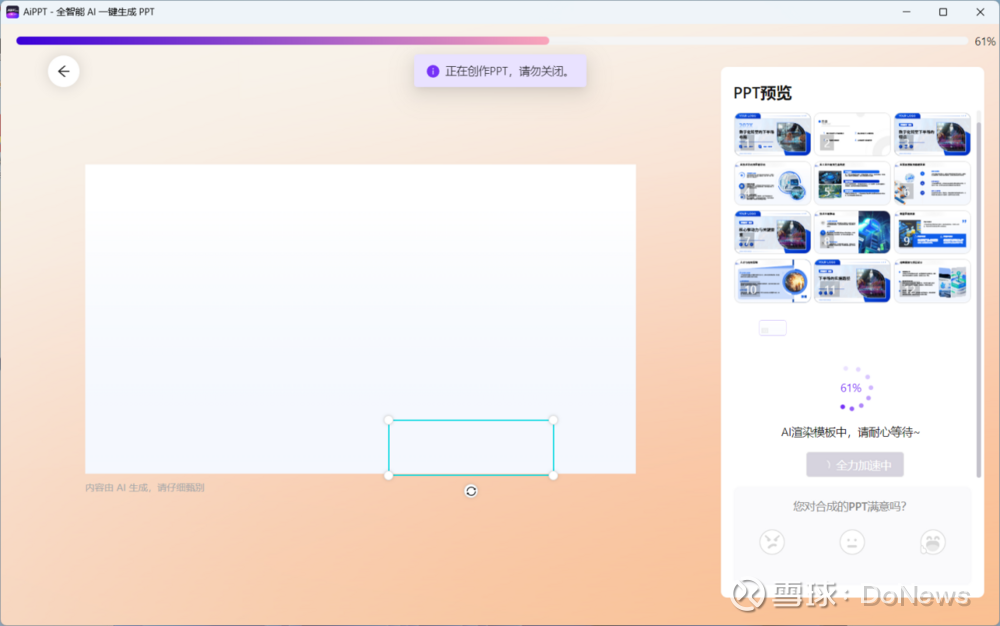 目前在AiPPT和知我AI等各类AI应用中都有专门针对锐龙AI处理器的应用版本。在AiPPT中,可一键生成PPT、自由画布、导入文档生成、AI生图、AI协作、AI文档阅读、等等。可以看到在NPU的加持下,PPT生成速度大幅度上升。