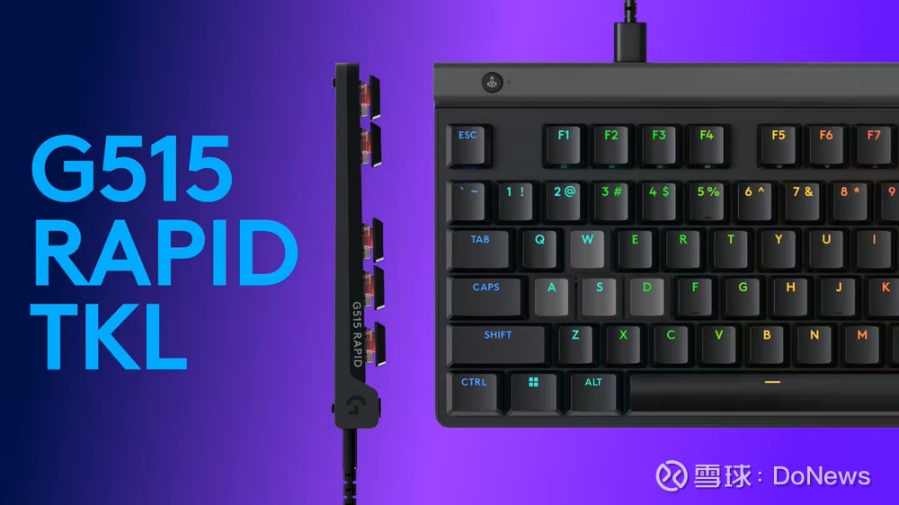 DoNews9月22日消息,罗技 G 此前推出的 G515 RAPID TKL 有线矮磁轴模拟游戏键盘现已上市,定价 1299 元。