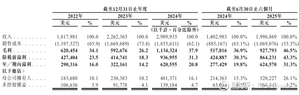 紫金黄金2025年上半年期内利润6.25亿美元,较上年同期的2.77亿美元增长125.6%;期内利润率31.3%,较上年同期的19.8%提升11.5个百分点。