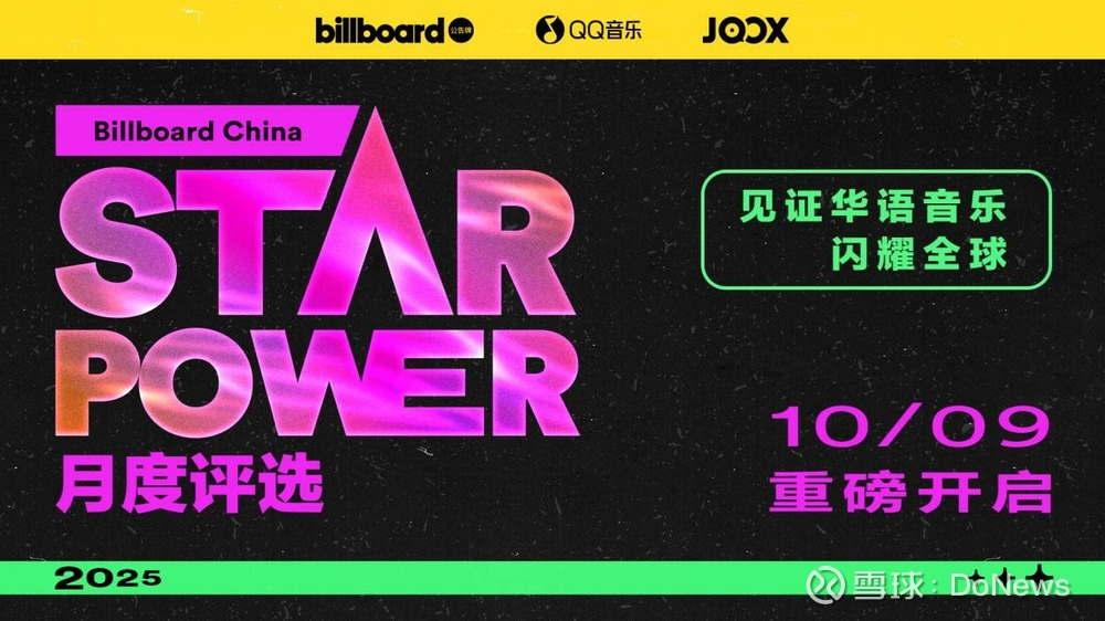 DoNews10月9日消息,10月9日,国际知名音乐品牌Billboard公告牌联合腾讯音乐娱乐集团旗下QQ音乐与JOOX双平台,推出“Star Power”月度评选活动。