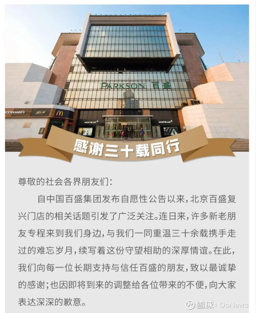 DoNews10月11日消息,据界面新闻报道,10月10日,北京百盛发布公告称,北京百盛复兴门店将于2025年12月31日关闭。对于闭店原因,公司解释,百盛集团正全面推进一场积极而全面的战略转型,对于受限于客观条件、难以在复合需求上实现均衡发展的门店,经过慎重评估不得不做出艰难但必要的决定。