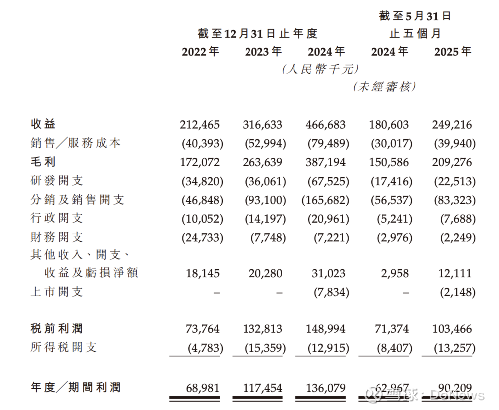 招股书显示,海西新药于2022年、2023年、2024年、2025年前5月营收分别为2.12亿、3.16亿元、4.67亿元、2.49亿元;期内利润为6898万元、1.17亿元、1.36亿元、9021万元。