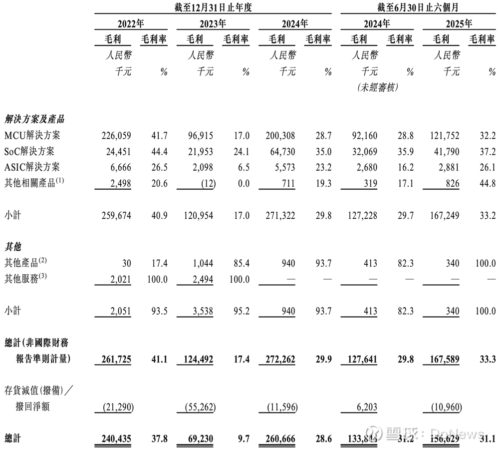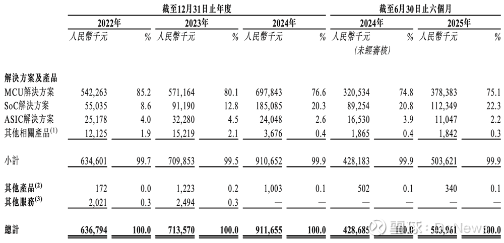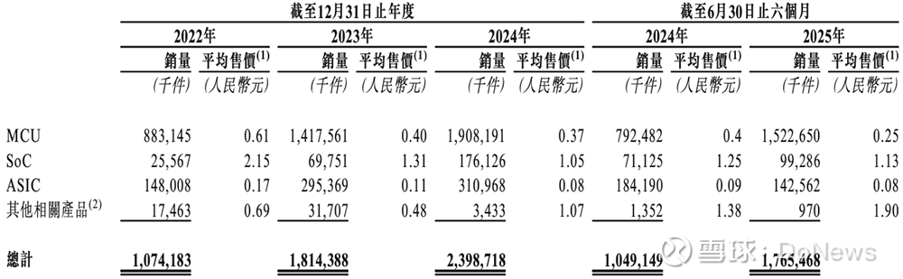 2025年上半年,其MCU、SoC、ASIC产品分别卖出了15.23亿件、0.99亿件、1.43亿件。