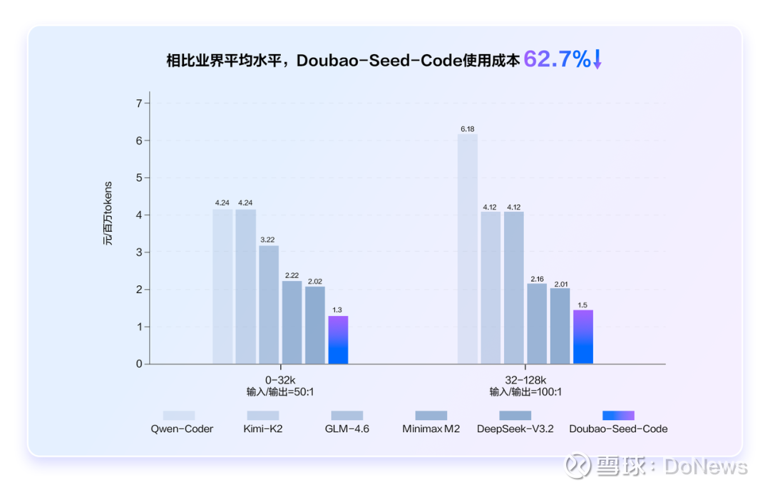 Doubao-Seed-Code 不止性能强,更考虑开发者的实际需求,将成本红利最大限度交给开发者。其沿用了火山引擎首创的分层定价模式,并配合全量透明 Cache 能力,在多轮对话中进一步降低成本。综合来看,Doubao-Seed-Code 输入、输出单价已达国内最低: