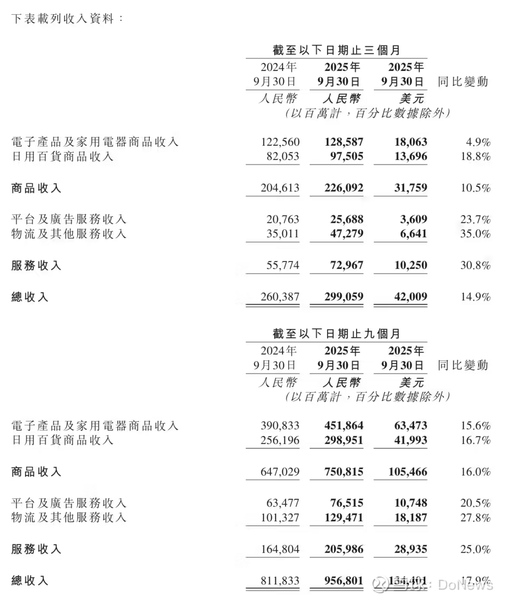 DoNews11月13日消息,京东集团今日发布 2025 年第三季度业绩公告:2025 年第三季度收入为人民币 2991 亿元(420 亿美元),较 2024 年第三季度增加 14.9%。