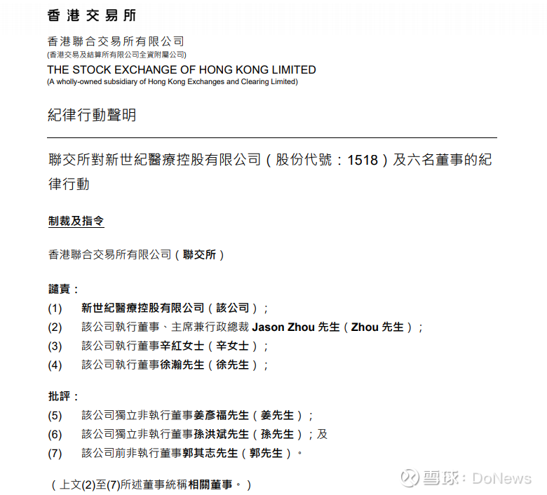 该公司及多名董事因关联交易违规导致数亿元亏损,于2025年6月遭到港交所公开谴责。港交所的谴责进一步加剧了市场对新世纪医疗的信任担忧,叠加内部治理漏洞,其经营颓势也随之持续发酵。