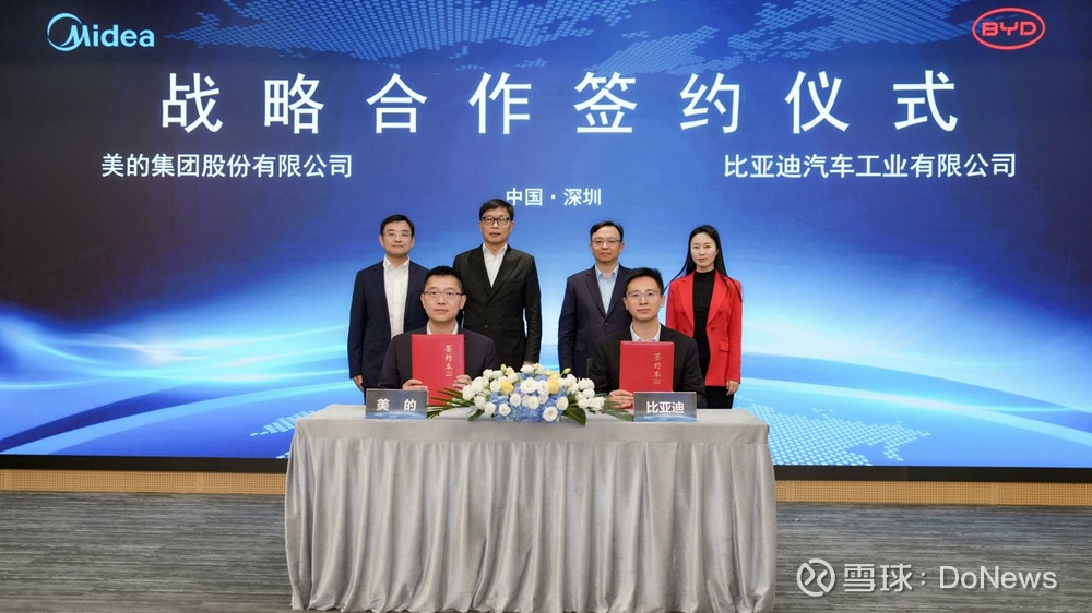 DoNews汽车11月24日消息,2025年11月21日,“全球新能源汽车领导者”比亚迪与“全球领先的智能家居科技集团”美的,在深圳比亚迪总部正式签署战略合作协议。双方将整合在智能汽车、智能家居及AIoT等领域的核心优势,打破车与家的边界,打造“人-车-家”智慧新生态。