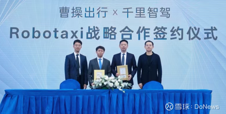 发布会现场,在曹操出行CEO龚昕与千里科技董事长印奇的见证下,曹操出行和千里智驾签署战略合作协议。