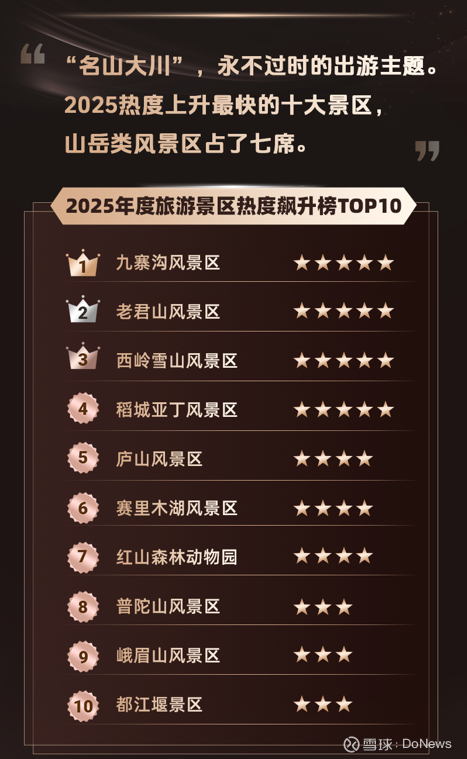 2025年度景区热度飙升榜,九寨沟风景区等排名靠前